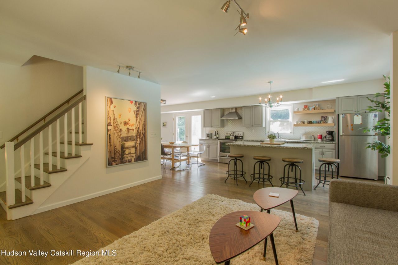 AVAIL FROM SEPT 2025. Private & Serene Modern Farmhouse Near Woodstock - Nestled on a private road just minutes from the heart of Woodstock, this beautifully renovated 4-bedroom, 2.5-bathroom modern farmhouse offers the perfect blend of charm, space, and privacy. Surrounded by mature trees, stone walls, and tall hedges, this home feels like a secluded retreat while remaining conveniently close to town.Step inside to a bright and inviting open layout, featuring gleaming hardwood floors throughout. The thoughtfully designed kitchen is a chefs dream, complete with all-new stainless steel appliances and ample counter space. The adjoining dining area flows seamlessly to the backyard through sliding glass doors, opening onto a spacious patio with a BBQ grill, hot tub, pool, and an expansive backyard???complete with a firepit, Adirondack chairs, and a lush garden area. A separate deck with outdoor patio furniture and a propane grill makes entertaining effortless. The homes main level offers multiple gathering spaces. The cozy den, conveniently connected to the kitchen, is perfect for reading or socializing around the kitchen island and dining area. The living room, tucked away at the opposite end of the house, provides a more private retreat and features a large L-shaped sectional sofa, a Smart TV, and even a piano for those musically inclined. Upstairs, the primary suite overlooks the backyard and pool, offering a peaceful escape with its en-suite bath. Three additional bedrooms???two with king beds and one with two twin beds???offer generous closet space and share a sleek, modern bathroom.The finished basement is a versatile space, ideal for a playroom, or study area. Currently set up for ping pong matches, it could also serve as a workshop or additional storage. Other notable features include a dedicated laundry room and a spacious one-car garage. This fully furnished rental is available starting September 1, 2025, with potential flexibility for an earlier move-in date. A rare opportunity to enjoy a private yet centrally located home just 8 minutes from downtown Woodstock, NY!
