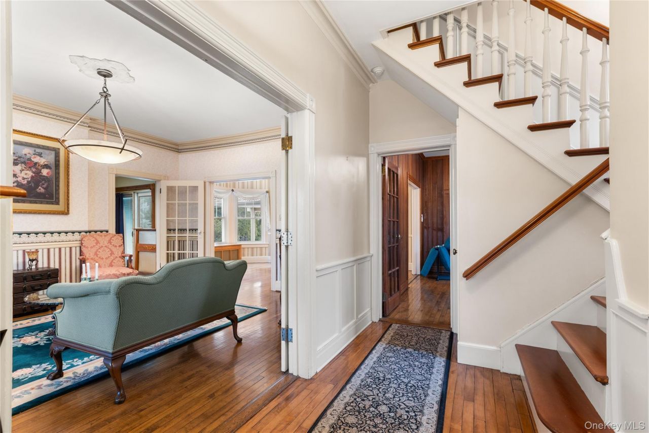 This beautifully preserved circa 1907 Victorian, set on a stunning .52-acre landscaped parcel, blends timeless character with exceptional modern upgrades. In excellent condition, the home offers nine spacious rooms, including four bedrooms and 2.5 baths, thoughtfully designed for both everyday living and elegant entertaining.A welcoming front porch sets the tone and leads into a gracious interior featuring a formal living room, formal dining room, and a warm, inviting den/library with custom built-ins and walk-out access to the property.The centerpiece of the home is the newly renovated eat-in kitchen, beautifully appointed with custom mahogany cabinetry, granite countertops, travertine tile backsplash, Viking gas cooktop with commercial-grade exhaust, Sub-Zero refrigerator, Bosch dishwasher, microwave, wet bar with second sink, pantry, and custom mahogany table, all complemented by rich oak flooring.Additional highlights include a partially finished walk-up attic, walk-out basement, new gas furnace, central air conditioning, full-house gas generator, and a new 50-year architectural roof.The property also features a detached two-car garage with heat, workshop, and second-floor loft, two driveways, and park-like grounds with in-ground sprinkler system, offering privacy and exceptional outdoor enjoyment.A rare opportunity to own a true Victorian gem with modern luxury and enduring craftsmanship. Taxes: $17325.79