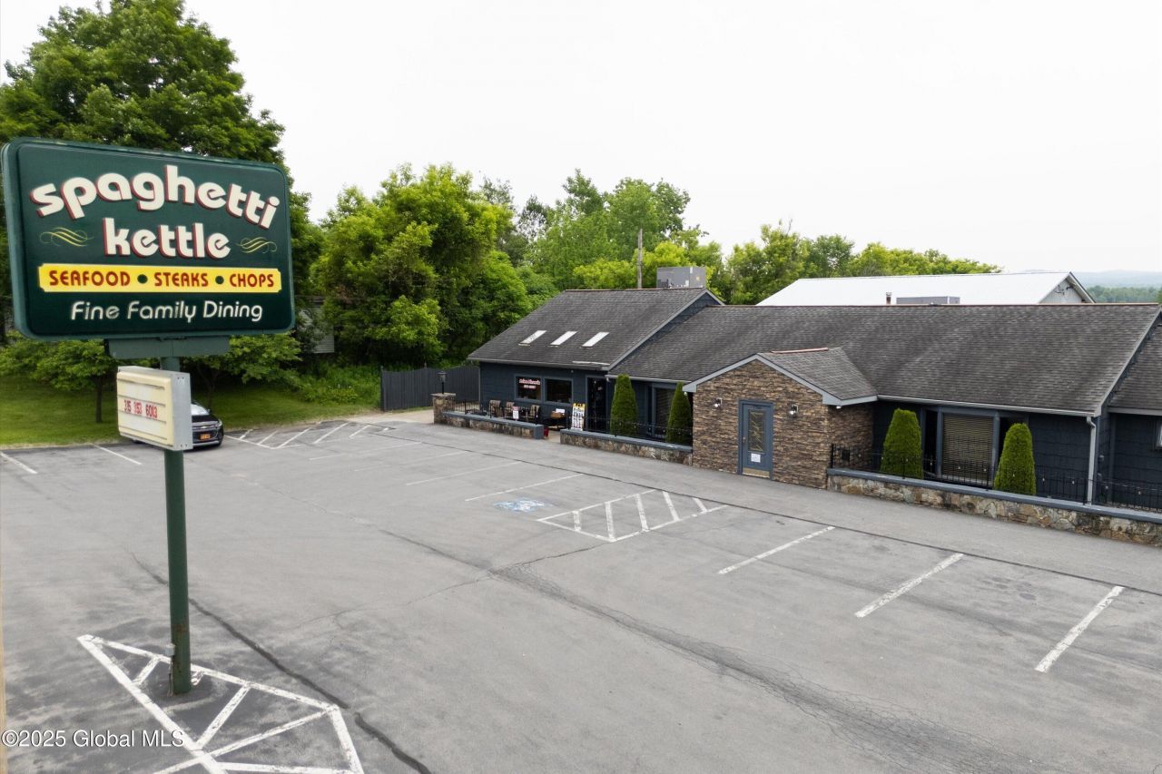 It's not just a restaurant- it's 1.34 acre site right in the path of big development in NYS. A mere 14 miles away from the Griffis triangle- (soon to be home of the $1.2B Chobani plant) This mixed use property spans 1.34 acres with three buildings, including a 45x50 pole barn housing two restaurants, a 24x50 garage, and two apartments (currently rented at $400 & $900/month). Separate meters for gas/electric, instant hot water, and heat/AC in apartments. Pizza shop pays $900/week; Spaghetti Kettle est. $2,000/month. Projected garage rent: $500/month. Utility cost: approx. $2,500/month. Owner will sell Spaghetti Kettle business + equipment separately. High visibility corner lot with major income potential!